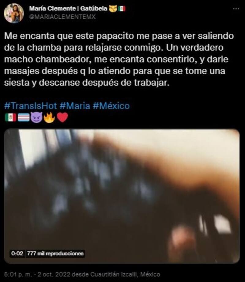 - Siete meses después, para ser exactos el pasado 2 de octubre María Clemente causó revuelo nuevamente pero esta vez por publicar un video en donde se le ve haciendo sexo oral a un hombre.
