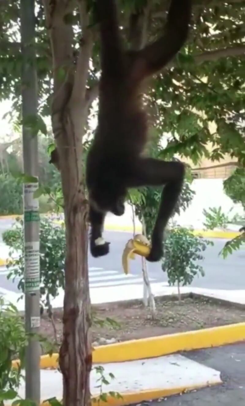 A través de Twitter, la cuenta de Novedades Quintana Roo difundió un video que llamó la atención en redes sociales, en este se puede apreciar a un mono que estaba colgado de un árbol comiéndose un plátano, en las calles de Cancún, México. Parecía una típica escena sacada de alguna caricatura.