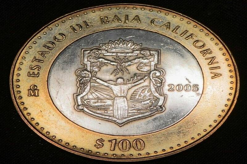 Esta moneda pertenece a la familia C del Banco de México, mejor conocido como BANXICO, la cual fue acuñada entre los años 2003 y 2007, la cual fue creada por motivo del aniversario número 180 de la unión de la República Mexicana, por lo que la pieza cuenta con el escudo de Baja California.