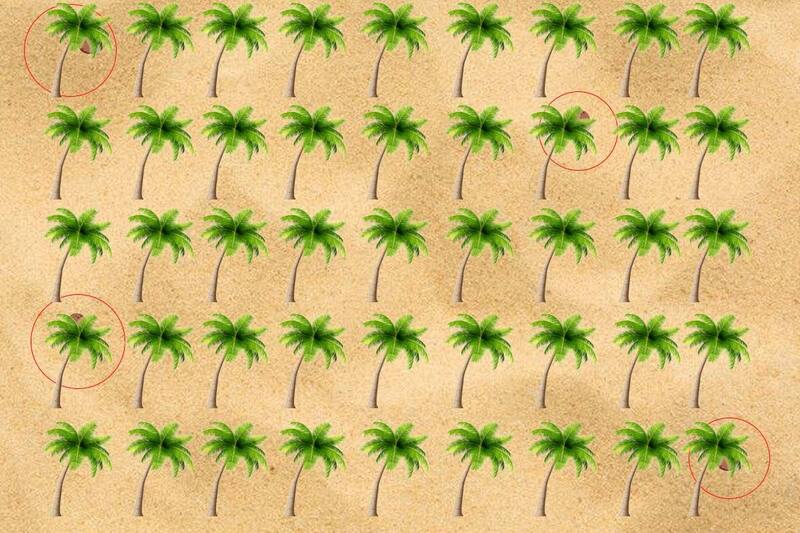 En esta prueba encontrarás una serie palmeras enfiladas, pero no todas tienen cocos y tú tendrás que ponerte a prueba y encontrarlos. Inténtalo y observa sí formas parte del uno por ciento de usuarios que han superado este reto elaborado.