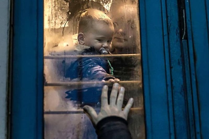 Hansen publicó en su perfil de Instagram la foto de su autoría y ha explicado la historia detrás de la imagen: El padre del bebé que aparece en la foto se tiene que quedar en Ucrania, ya que los hombres entre 18 y 60 años tienen prohibido huir del país. Por esto, los trenes y coches que salen del país los ocupan mayormente mujeres y niños.