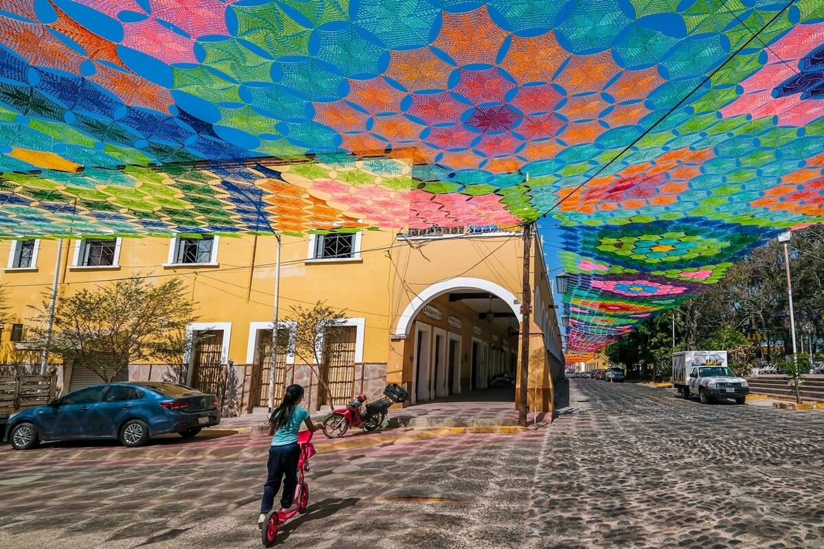 El colectivo "Cielo tejido", formado por unas 150 mujeres y hombres, ha logrado que su trabajo no solo cubra las calles del municipio Etzatlán, sino que también obtuviera un Guinness World Records al ser considerado el pabellón de tejido más grande del mundo con casi 8.000 metros cuadrados.