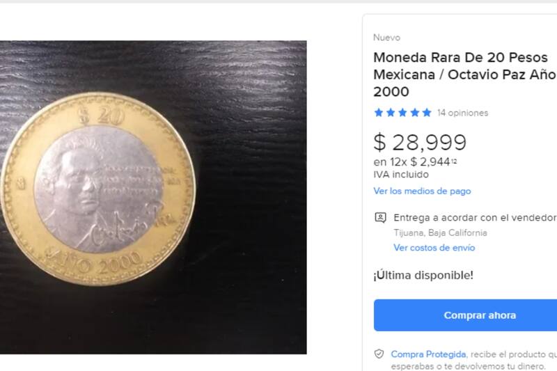 Actualmente, puedes encontrar esta moneda ofertada en Mercado libre, donde puede costar entre 15 mil y 30 pesos, aunque, de acuerdo con este sitio, puede valer incluso menos de mil pesos.