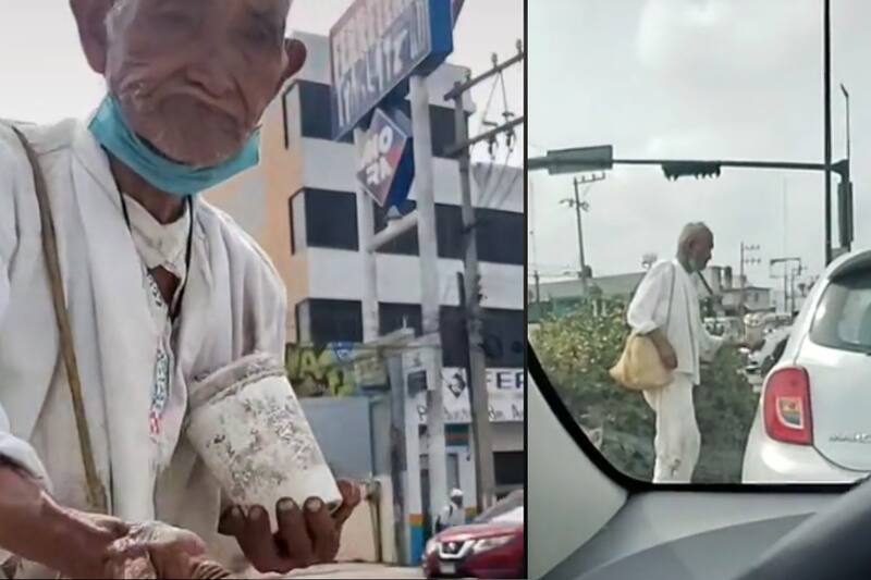 VIDEO: Abuelito se vuelve viral por solo aceptar monedas de 10 pesos en el semáforo