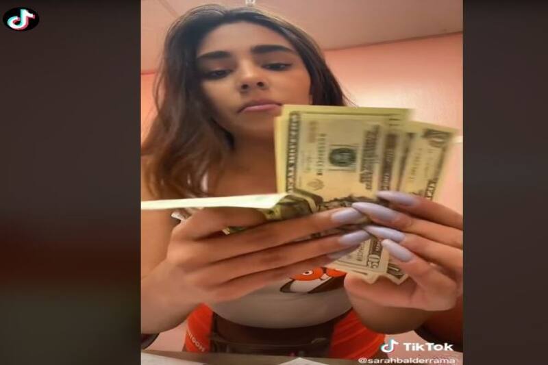 Se trata de Sarah Balderrama, una joven que trabaja como mesera en un restaurante Hooters ubicado en Ciudad Juárez, Chihuahua y quien compartió mediante sus redes sociales la gran suma de propinas que logró juntar en un día. El video se viralizó de inmediato, pues causó el asombro de los internautas, ya que hay personas que por esa cantidad de dinero trabajan jornadas de 8 horas o más durante todo un mes.
