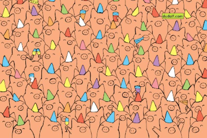 Acertijo visual: Encuentra los cerditos que no tienen sombrero de fiesta