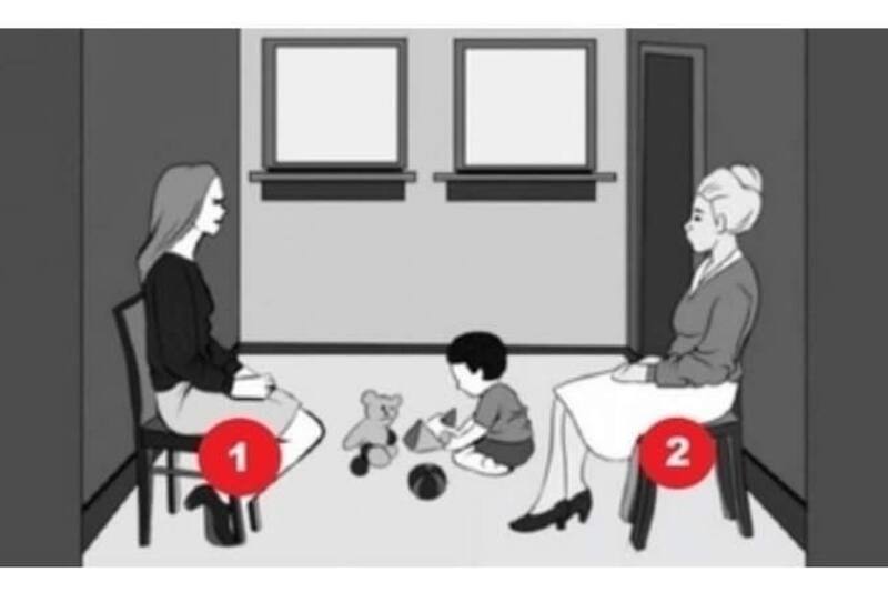 Al parecer está es la respuesta correcta, pues si observas con detenimiento, el niño se encuentra con dirección hacía esa mujer. Generalmente los bebés siempre buscan a sus mamás y estar cerca de ellas.