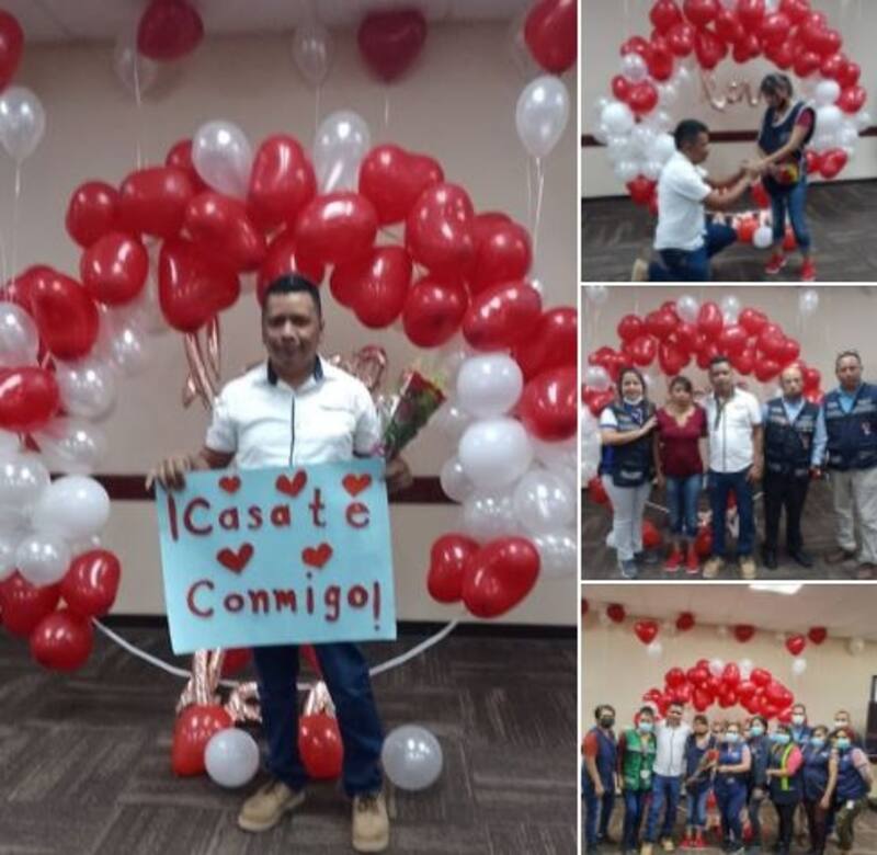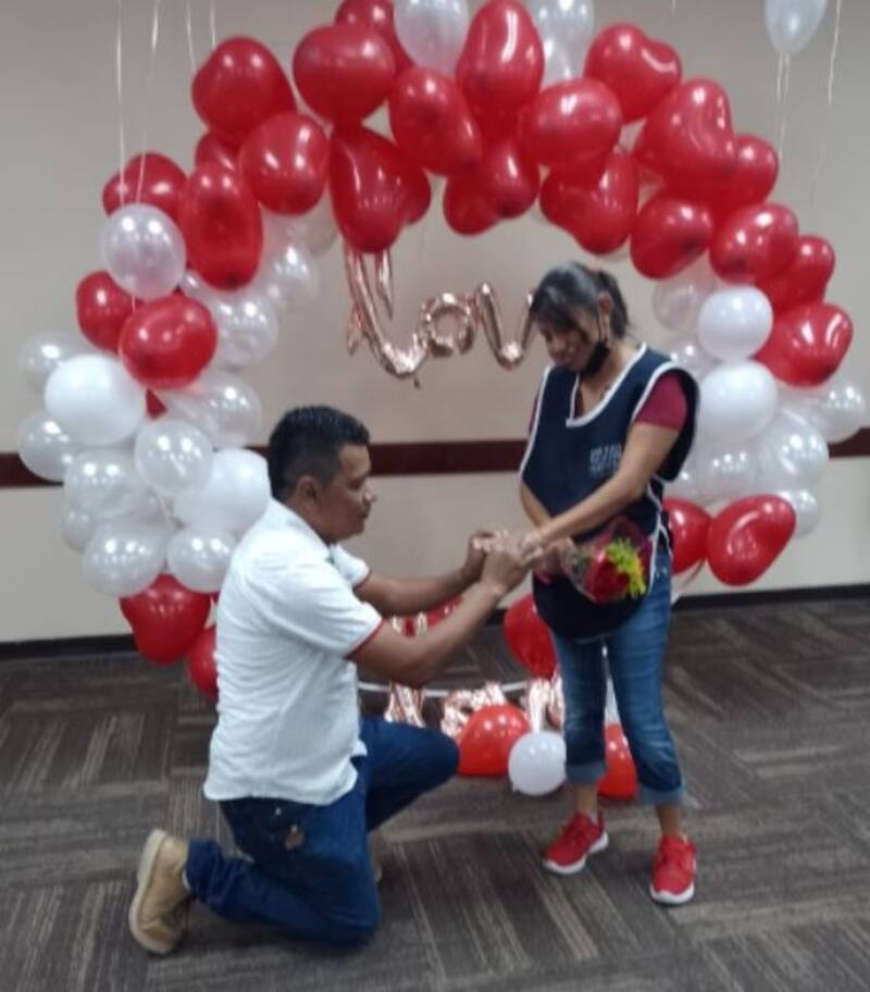 “Se me ocurrió hablar con Recursos Humanos (RH) si hay oportunidad de que me presten la sala y me dijeron que estaba bien, sólo me dijeron que les avisara qué día y a la mañana siguiente fui a comprar el anillo”, comentó el futuro esposo.