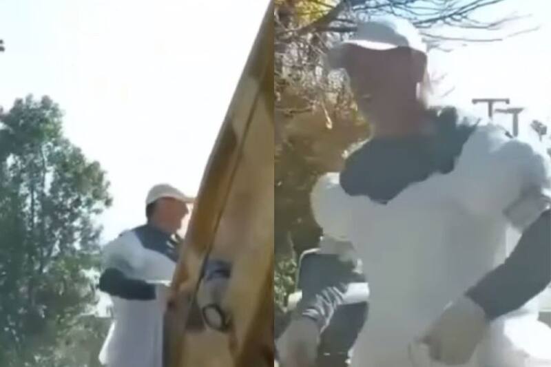 De acuerdo con el video, un recolector de basura hizo sus tareas mientras tenía puesto el traje de novia. Una mujer, que se encontraba dentro de su automóvil se encargó de filmar el momento. “Es para sacarle una foto”, se escucha en el video.