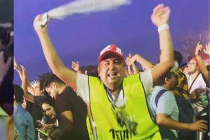 El "cubetero" se mostró muy animado, pues mientras vendía, destapaba cervezas y las servía, coreaba las canciones con una gran sonrisa y un entusiasmo único, incluso sacó un trapo cuando los argentinos cantaron su canción más sonada Kilómetros.