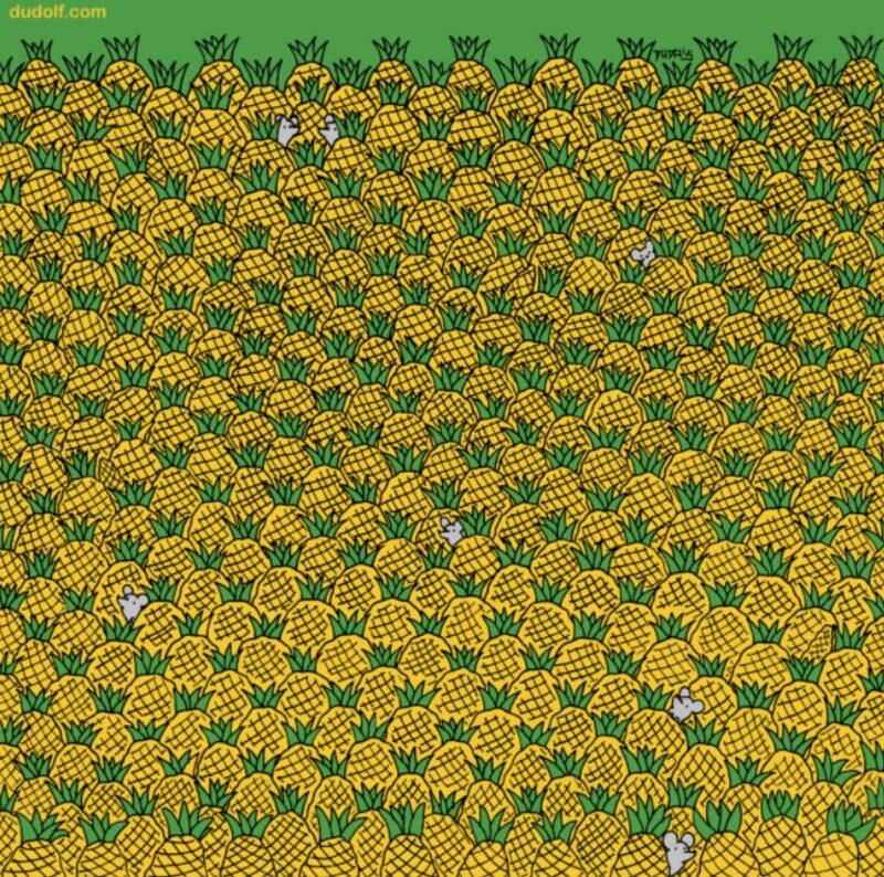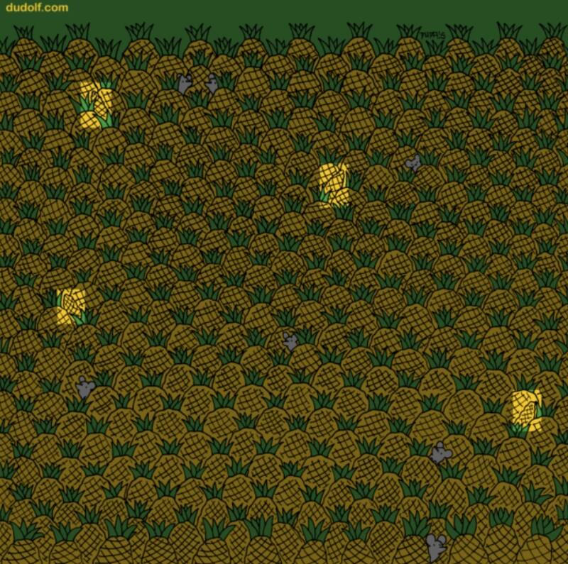 Por lo mismo, sólo tendrás diez segundos para encontrar cuatro elotes escondidos entre las piñas. Concéntrate y no hagas trampa, comienza el reto.