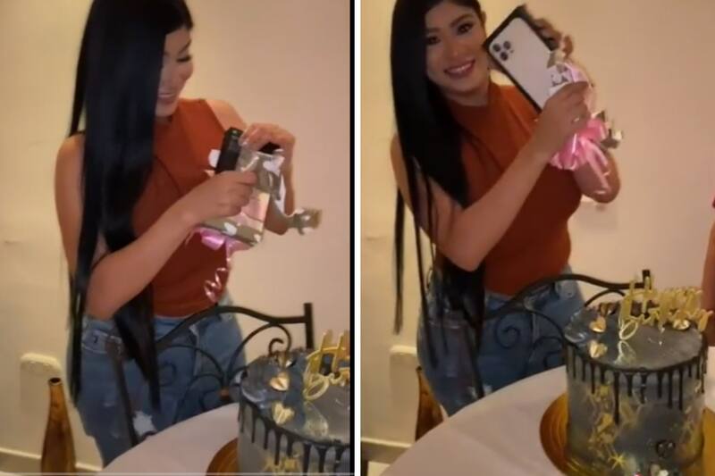 En esta ocasión te mostramos un video de una mujer que grabó a su prima en su cumpleaños. En la fiesta se observa que la mujer abre un regalo, cuando se da cuenta de lo que es, lo enseña a la cámara, al mismo tiempo que le quita el envoltorio.