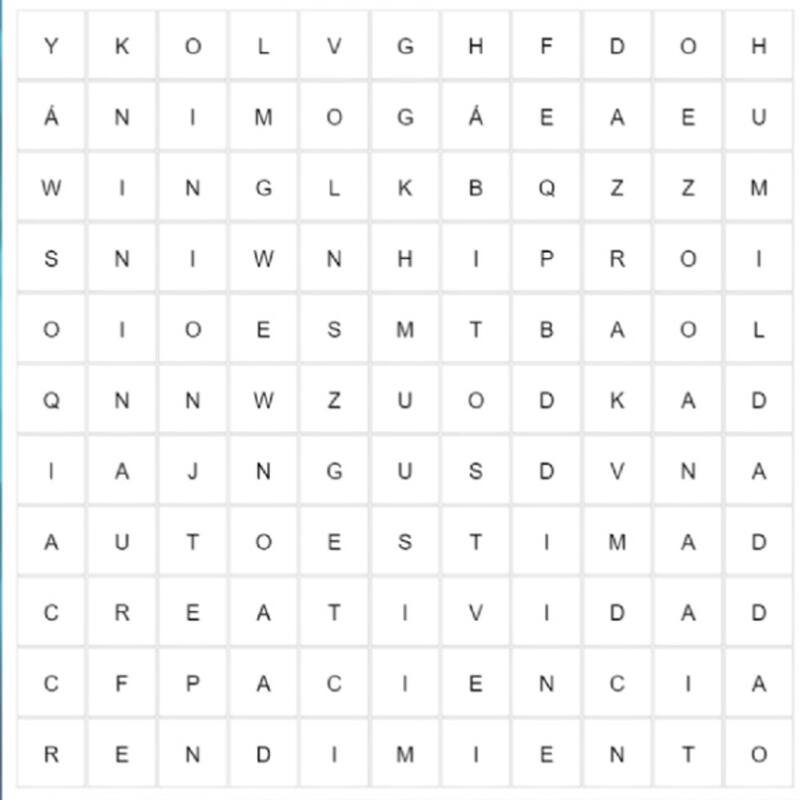 Cuando ya tengas tus tres palabras, desplázate a las líneas de abajo y descubre lo que significa. De esta manera conocerás tus debilidades.