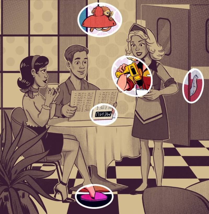 El reto de hoy es un poco complejo pero no imposible, requieres poner toda tu atención para detectar hasta el más mínimo detalle. En esta imagen se observa a una pareja en una cafetería pero hay 5 cosas que no corresponden a la romántica escena ¿Te atreves a encontrarlas?