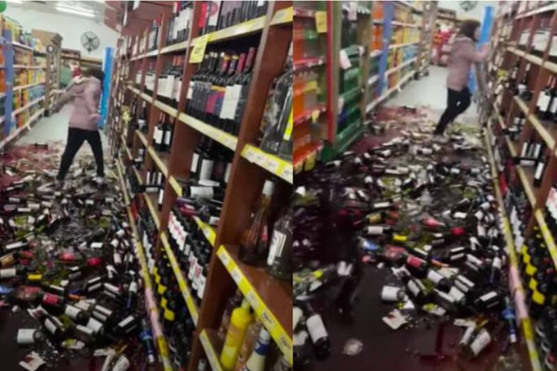 En la corta grabación se muestra a la mujer tirando al suelo todos los vinos de un mueble mientras grita y descarga su enojo.