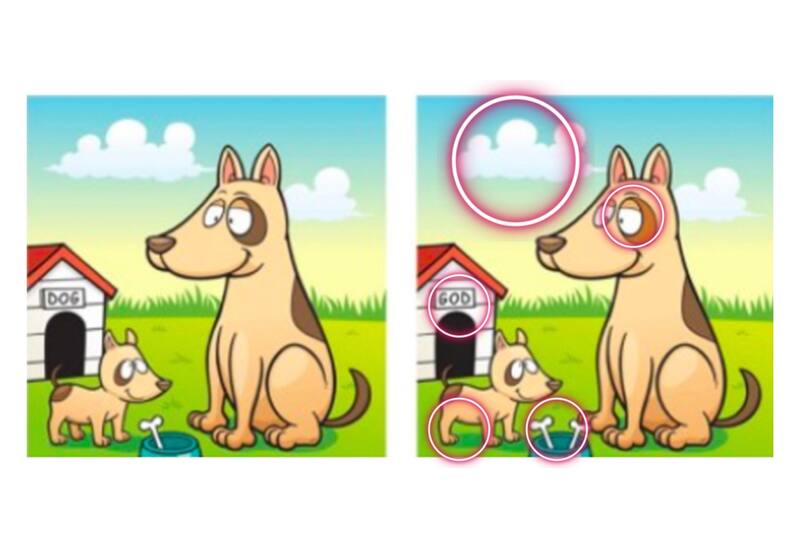 Tendrás 16 segundos para localizar las cinco diferencias que existen en esta imagen de perritos.