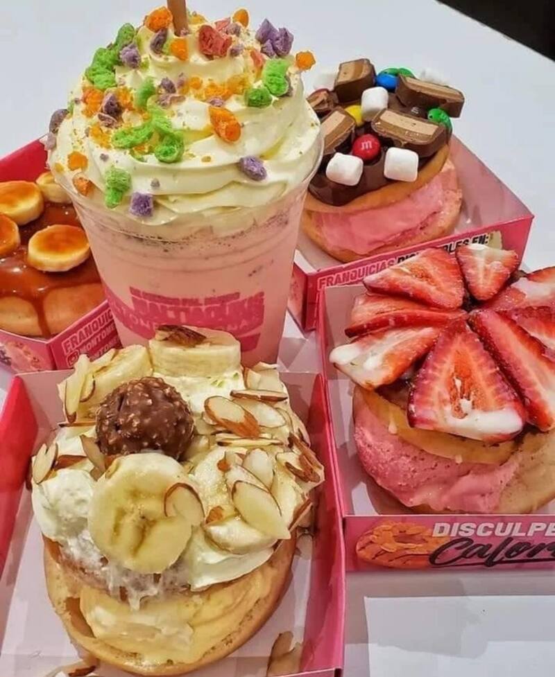Si eres de buen comer y eres fan de que te sirvan grandes porciones, este lugar es perfecto para ti. Además de disfrutar del gran sabor de estas ricas donas las podrás acompañar un delicioso relleno de helado o frutas. Además de colocarle toppings como dulces o chocolates.