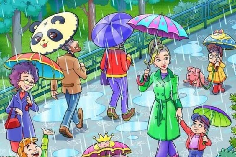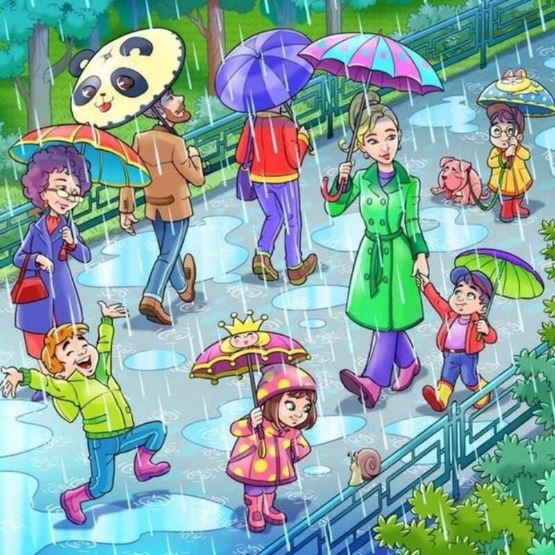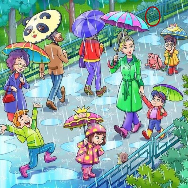 La siguiente imagen tiene mucha sencillez en su diseño, pero algunos detalles no concuerdan porque tiene ciertos elementos que no calzan ya que hay un sapo escondido entre la lluvia ¿serás capaz de encontrar al animal?