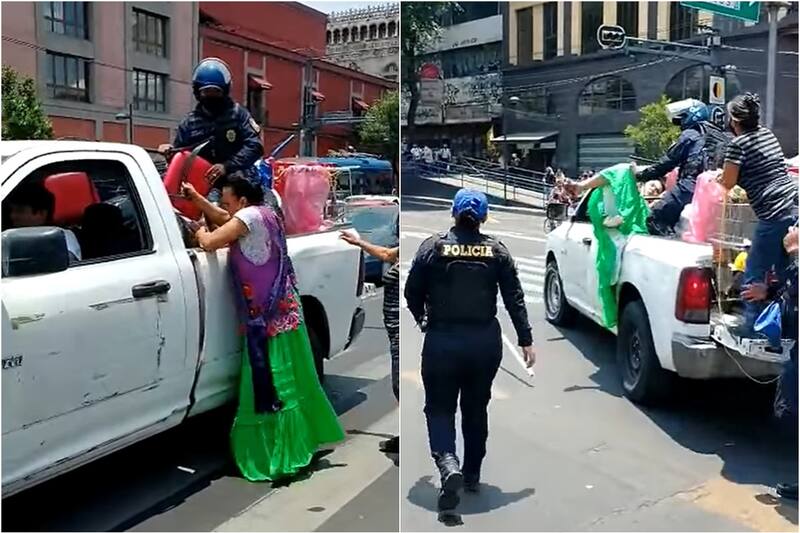 Aunque el hecho ocurrió el pasado sábado 4 de junio, el video comenzó a viralizarse este día. La grabación de 18 segundos muestran los intentos de "Lady tacos" pelear con los elementos de la policía capitalina quienes llevan sus pertenencias en la camioneta blanca.