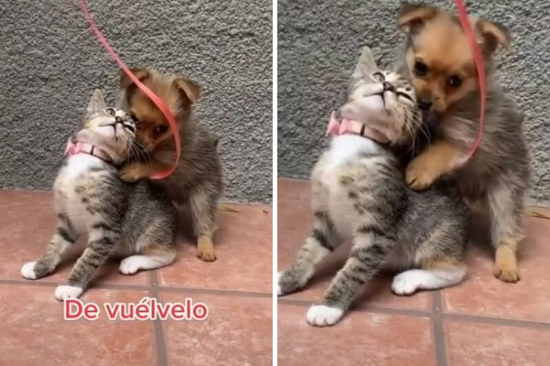 La realidad es que hay perros que se llevan muy bien con los gatos, eso sí, suponemos que hay sus excepciones. Acá te dejamos el video de @blon.gump que ahora tiene casi 10 millones de reproducciones, más de 1 millón de 'me gusta' y muchos comentarios acumulados.