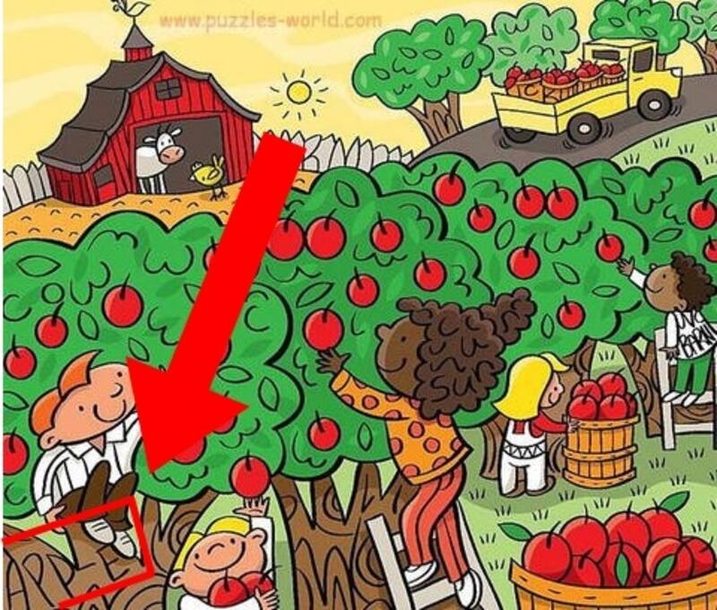 En la imagen, compartida por Puzzles World, se puede observar un a unos niños cortar manzanas, el reto visual consiste en identificar la palabra Apple en 30 segundos.