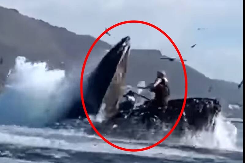 En el video que circula por redes sociales se observa cómo el cetáceo abre la boca y se traga a las dos mujeres, pero afortunadamente la ballena las escupió y lograron escapar.