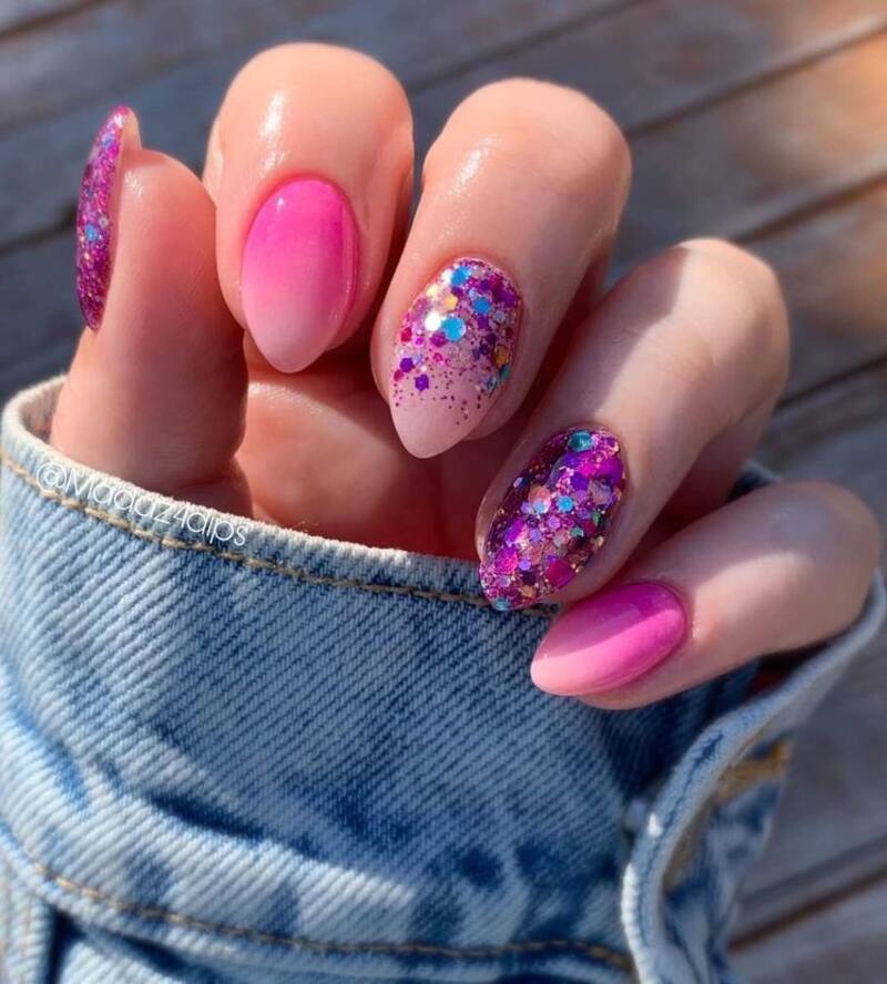 La alegría y el entusiasmo son tus principales virtudes, nunca te quedas quieta prefieres viajar, divertirte y salir a todos lados. No le temes a ningún color ni diseño, por eso lo tuyo son uñas llamativas con efecto glitter.
