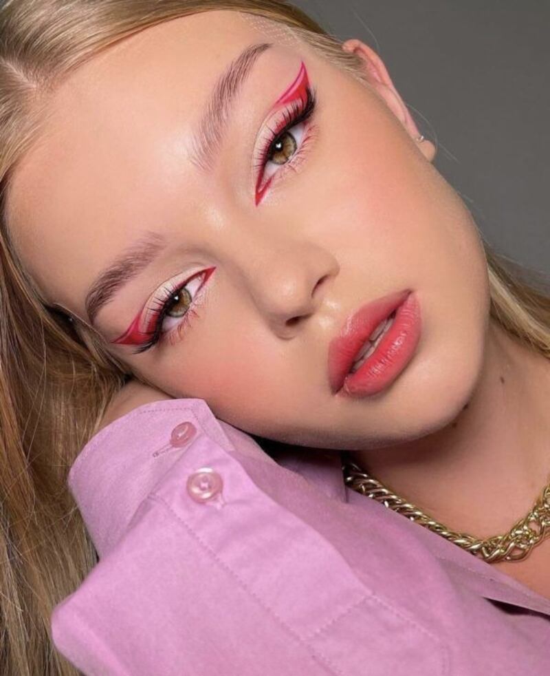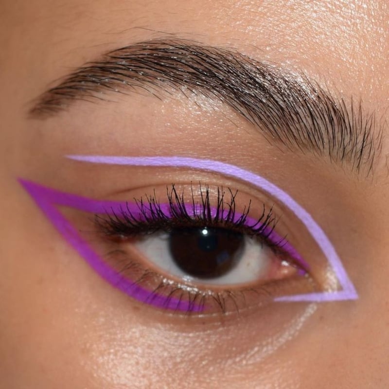 Un delineado rosa estilo Barbie no puede faltar en tu vida, ahora que este color está en su mejor momento no dudes ni un segundo en usarlo. Puedes intentar usarlo con formas gráficas para hacerlo más divertido este verano.