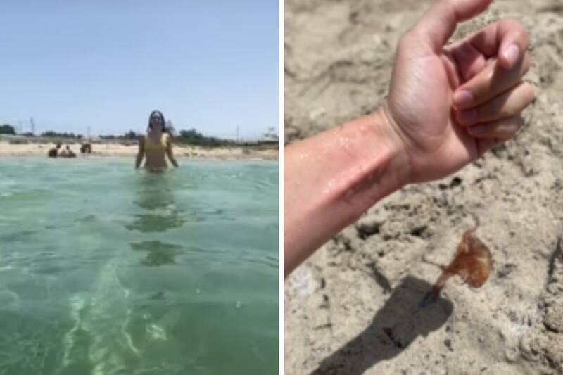 En el video, la mujer se sumerge en el agua, pero en un momento se agarra el brazo y señala que una medusa la picó, después se observa su brazo con piquetes y también muchos de estos animales en la arena. Si bien, la creatura no provocó más allá de una inflamación y algunos otros síntomas, se recomienda no meterse al mar cuando la presencia de estos sea muy notoria.