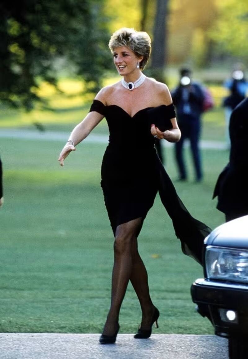 Este vestido negro clásico con escote de corazón se convirtió en su look más recordado por el significado que hay detrás. Este look atrevido se convirtió en la venganza tras su separación con el Príncipe Carlos y su salida de la realeza, pues este look salía totalmente de lar normas del protocolo.
