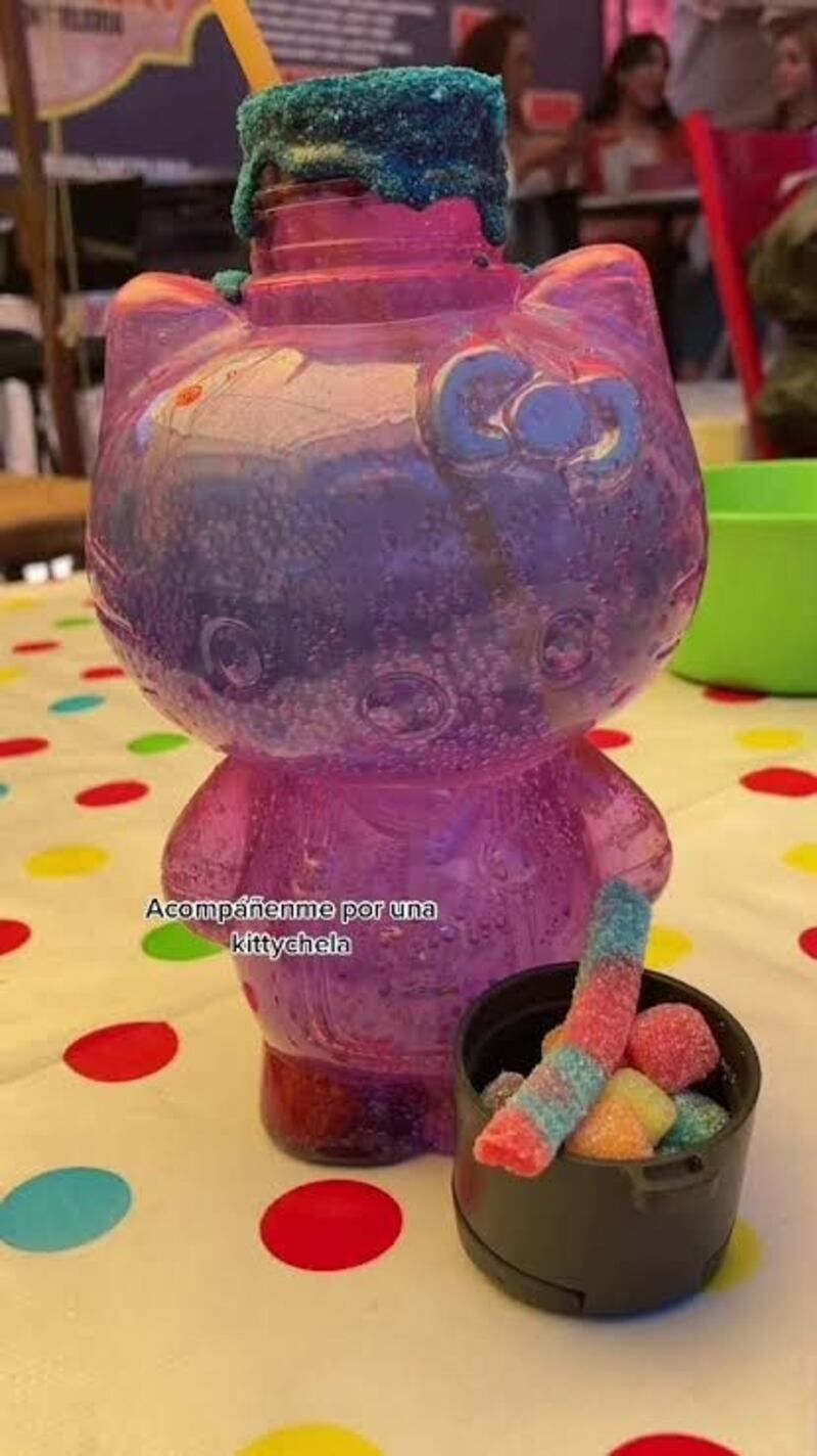 Si eres amante de Hello Kitty y la cerveza está michelada es la indicada para ti. Pues está bebida combina ambas creaciones. Tiene la imagen famosa de caricatura niponina, te va a encantar. Este refrescante trago contiene varios ingredientes que seguramente ya conoces: cualquier chela con escarchado de chile piquín, Miguelito, chamoy o lo que más se te antoje, acompañada de gomitas de colores.