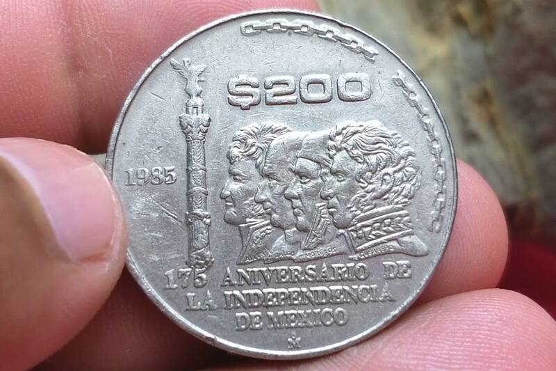 Es de aquí de donde sale esta moneda de 200 pesos creada para estos festejos, que estuvo disponible en México de 1960 a 1980. No sólo llama la atención la cifra que tiene, sino que también los héroes de la patria que muestra en uno de sus lados. Miguel Hidalgo, Morelos, Ignacio Allende y Vicente Guerrero se pueden apreciar.