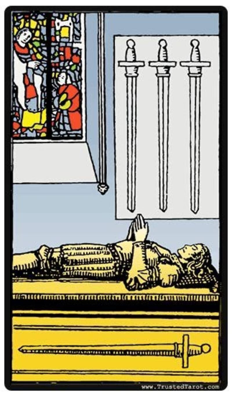 2. Cuatro de Espadas: Momentos para grandes reflexiones, necesitaras de espacios para estar en calma y soltar. Tiempo para refrescar el espíritu y el alma, tiempo para reacomodar las prioridades, darte cuenta de que lo interno importa mas que lo externo y cuando esto este claro lo demás vendrá y se acomodará solo. Puedes tener preocupaciones con respecto al trabajo, pero no te angusties de más todo marchara de nuevo en calma y fluidez al terminar la semana, es cuestión de paciencia. Semana para salir de la rutina con la pareja y la familia, necesitan hacer cosas diferentes y tu serás el encargado, la encargada, de que así sea, en ti esta retomar la armonía familiar. En ti estar salir del estancamiento. En la salud cuida de dolores de cabeza, cuida de zumbidos en lo oídos.