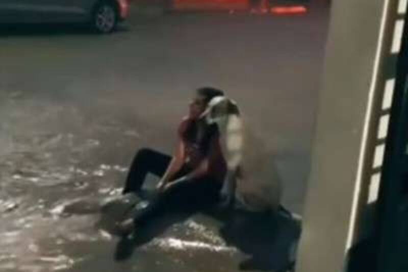 A su lado permaneció el perrito, quien pese a la lluvia no se movió ni un solo segundo. La precipitación era tanta que la calle comenzó a realizar “ríos” de agua, más la dueña y su mascota que se mantuvieron en el lugar.