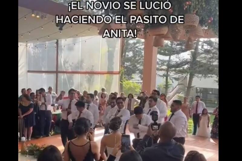 Fue el usuario de TikTok @vicshowperu el encargado de subir uno de esos videos con el texto "El novio se lució haciendo el pasito de Anita", mientras puede observarse a algunos hombres bailando una coreografía frente a la emocionada novia.