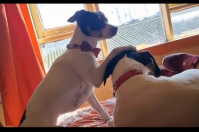En el clip se observa a la pequeña poner su mano sobre el otro can, mientras a la par se escucha una voz que da la bendición. El perrito se resiste a dejarse bendecir, sin embargo, su hermanita alcanza a ponerle una pata en la cabeza con lo que logró su cometido.