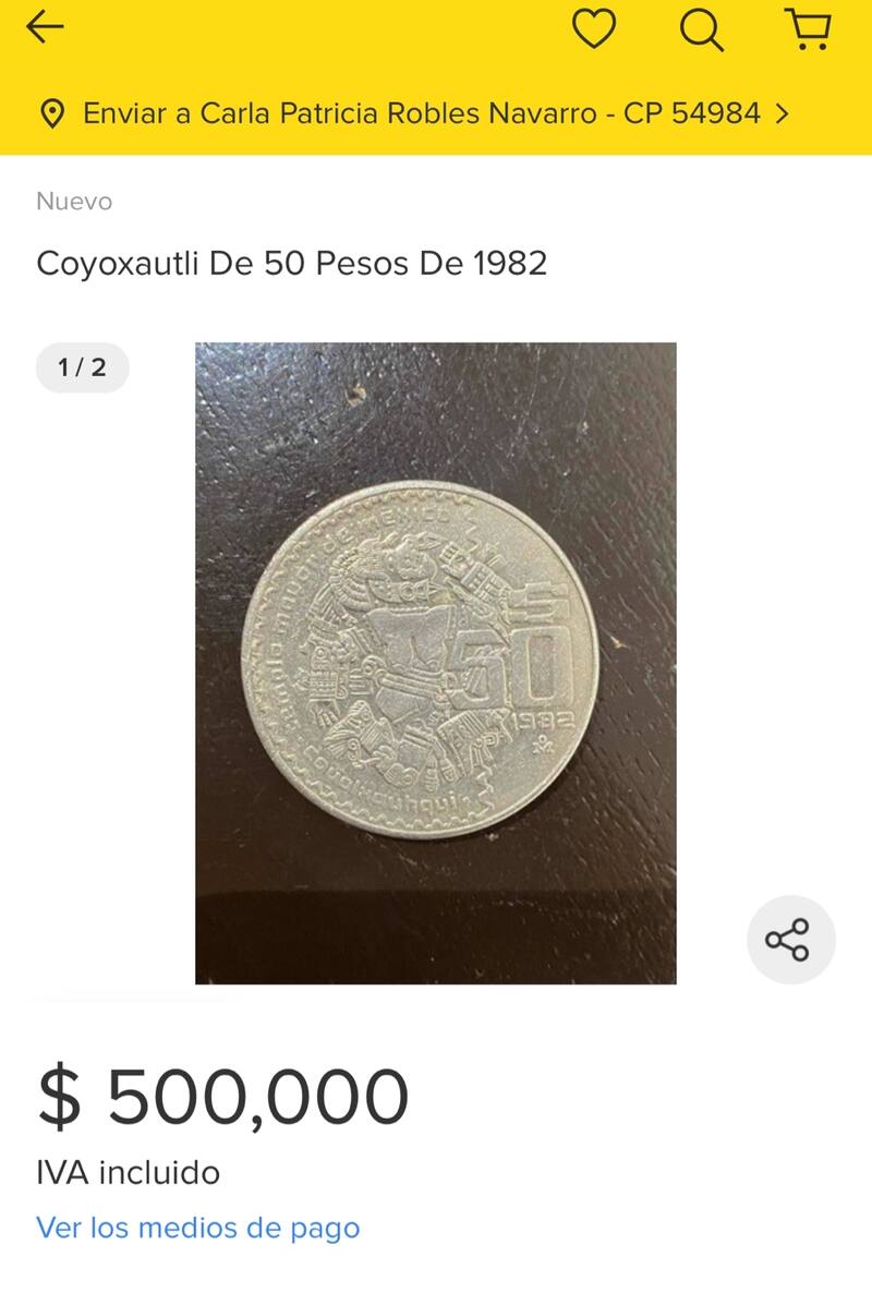 Una moneda de 50 pesos con ciertas características, se cotiza en plataformas de compra y venta por internet hasta en 500 mil pesos mexicanos, ya que los coleccionistas de este año están en busca de esta pieza que podrías encontrar en tu monedero, por lo que es de suma importancia que cheques todas las especificaciones.