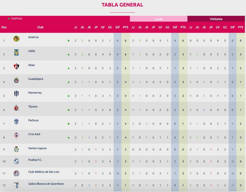 América, Tigres, Atlas y Chivas, dentro del top 4.