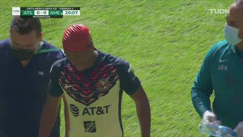 Pedro Aquino sufrió una herida en la cabeza luego de chocar con su compañero Sebastián Cáceres durante el primer tiempo del partido entre Atlas y América, correspondiente a la Jornada 4 del Torneo Grita México Apertura 2021.