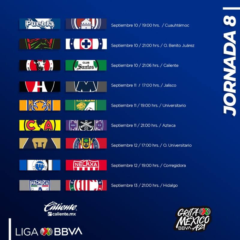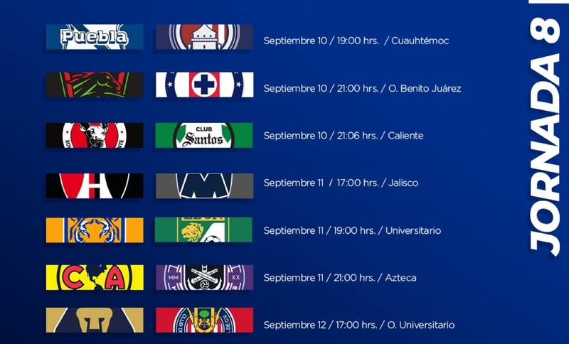 Para el sábado 11 de septiembre se desarrollará triple cartelera, primero Atlas le hará los honores a un Monterrey que no pasa del empate desde hace tres juegos, para luego seguir con un cotejo que promete estar lleno de emociones porque León se adentrará al Volcán para medirse con Tigres, y así cerrar el día con América ante Mazatlán, choque donde las Águilas llega como amplias favoritas, ya que tienen en sus manos la permanencia del liderato general.