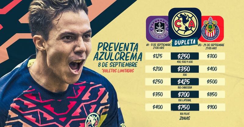 Las entradas para ambos compromisos rondan desde los 250 pesos hasta los 750, dependiendo la zona en la que decidan comprar los boletos. Cabe mencionar que de acuerdo con información del conjunto de las Águilas la promoción será limitada, por lo que te debes de apresurar para conseguir las tuyas.