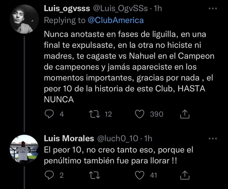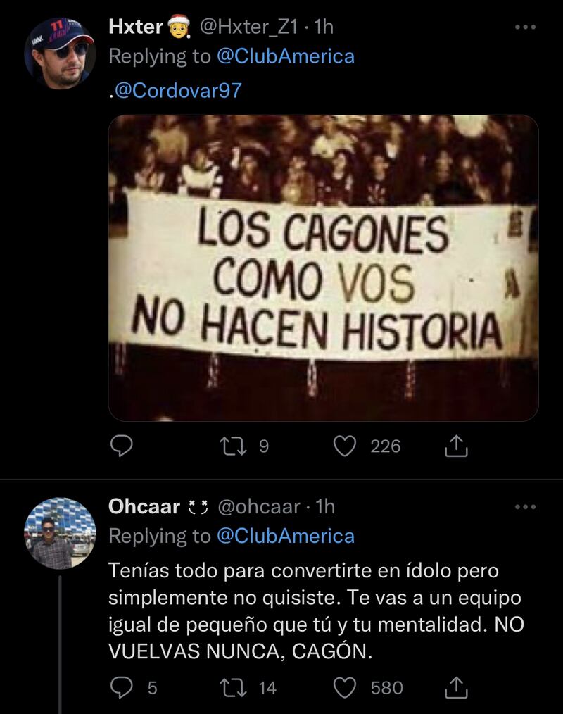 La salida de Córdova causó polémica en redes sociales, ya que la afición se vio molesta con su desempeño en este torneo, por lo que no dudaron en expresar su opinión lanzando comentarios fuertes hacia el ex 10 americanista.