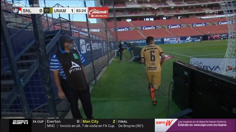 Las cámaras captaron al jugador de los Pumas, Erik Lira regresando al terreno de juego al minuto 84 después de ir rápidamente al baño. El silbante Marco Antonio Ortiz pitó la pena máxima al 82´por lo que el mediocampista de los "Universitarios" aprovechó para ir a los vestidores al baño.