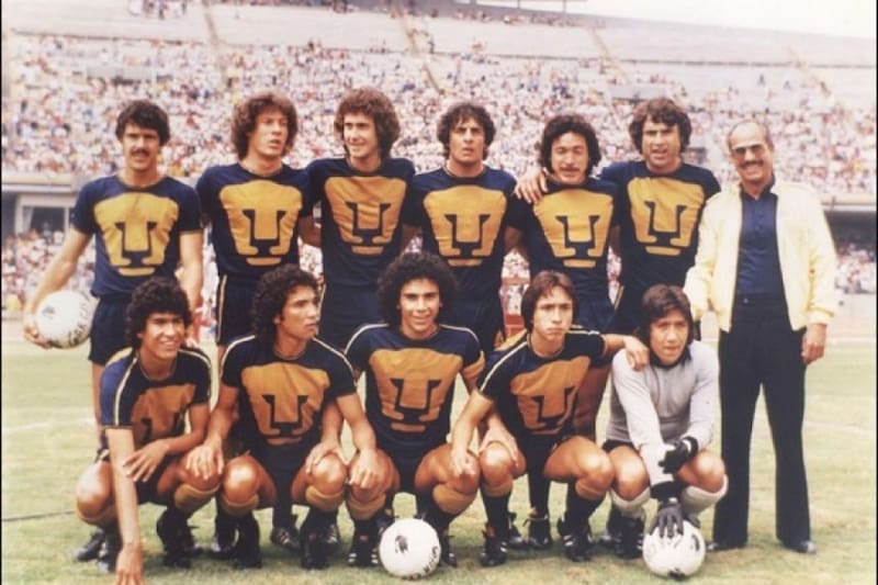 Quizá la postal clásica del momento dorado de Pumas, con Cabinho, máximo romperredes felino, Hugo Sánchez o Ricardo Ferretti. Con tres combinaciones: blanca con puma azul, dorada con azul y azul y dorada, dejaron los primeros momentos importantes en la historia del equipo, incluyendo los dos primeros cetros en la historia del equipo en la 1976-1977 frente a Leones Negros de la Universidad de Guadalajara y 1980-1981 ante Cruz Azul. Esta fue la primera indumentaria que presumió al puma gigante en el pecho y que estableció dicha tradición que identifica a la afición universitaria.