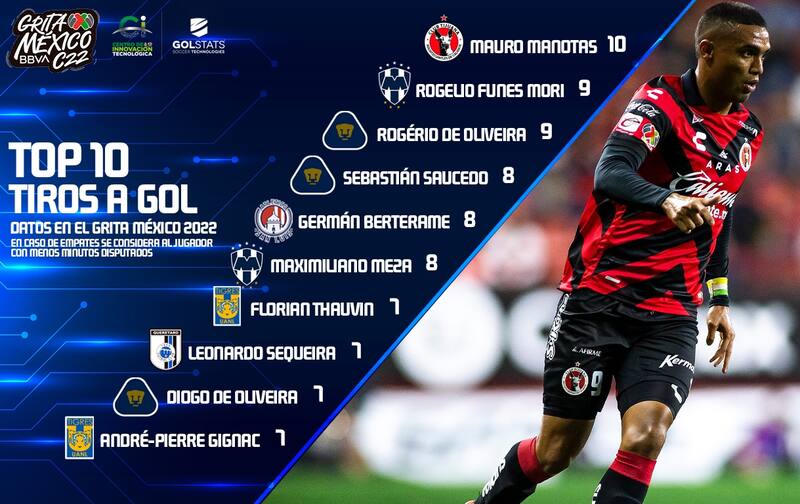 La Liga MX compartió información sobre los jugadores que han tirado más ocasiones a la portería contraria, misma que es liderada por Mauro Manotas de Xolos, pero los Pumas aportan tres jugadores a este listado integrado con elementos de varios clubes.