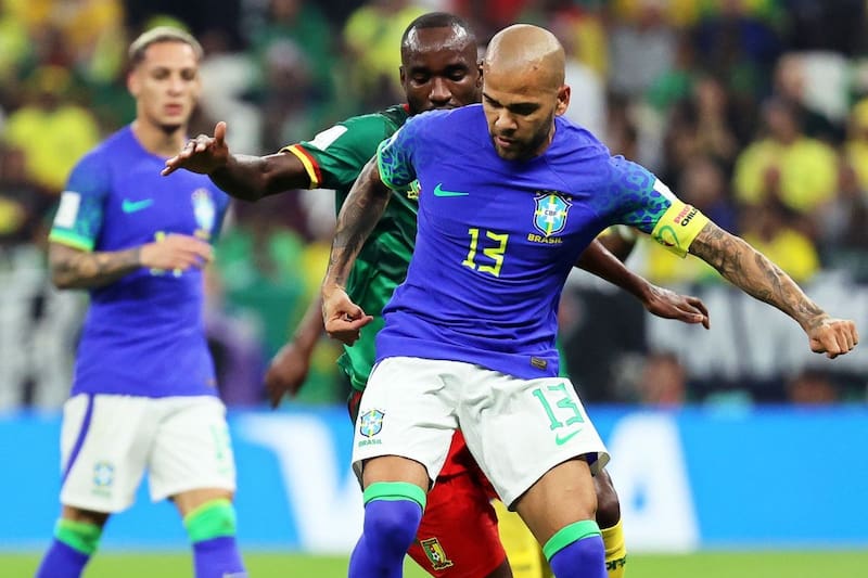 Dani Alves fue elegido para ser el capitán de la Selección de Brasil en el encuentro correspondiente a la Jornada 3 del Grupo G ante Camerún en el Mundial de Qatar 2022, convirtiéndose en el jugador más grande de este país en disputar una Copa del Mundo.