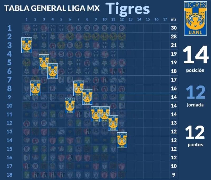 Tigres corre el riesgo de quedar fuera del repechaje, aunque le quedan 6 partidos por disputar en la Liga MX.