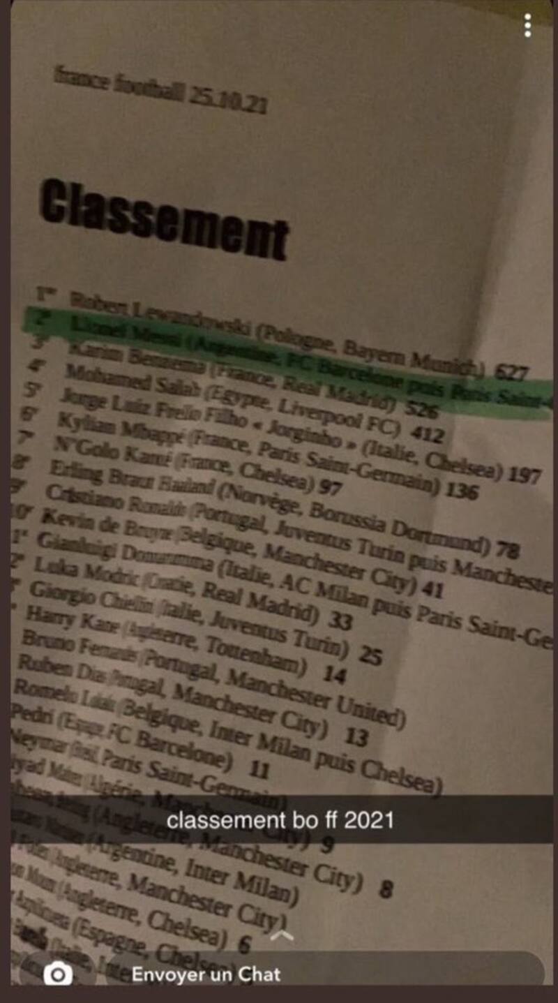 No obstante, al parecer habría ya un ganador, de acuerdo a una supuesta lista que se ha filtrado mediante redes sociales, en la que le dan el premio a Robert Lewandowski, al contar con 627 votos, mientras que Messi y Karim Benzema serían segundo y tercer lugar, respectivamente.