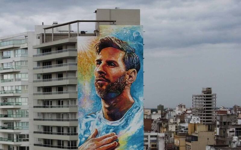 Imágenes del Mural gigante de Messi