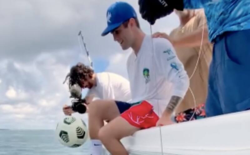 Christian Pulisic, el nuevo Capitán América de la Selección Estadounidense se está encargando de ser el hombre polémico del combinado de las barras y las estrellas dentro y fuera de la cancha, la ultima que ha hecho es el reto de dominar el balón sentado sobre la orilla de un bote justo sobre un pez mero gigante, al final el jugador resbala al mar y de inmediato los suben a la embarcación y comienza a reírse.